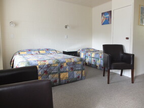 - One Motel Unit with queen bed and single in bedroom, 1 single in lounge.